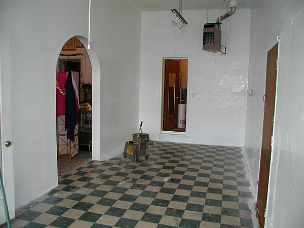 The 300 square foot suite next to Zarifa's store is a perfect starting point to offer beginning belly dancing classes and workshops, and allow her to move some of the belly dancing supplies out of the main store to make room for current inventory. She began remodeling this weekend, removing the aged and damaged wainscoting paneling from the entire room and adding a beautiful arched doorway between the suites. The completed studio will have new flooring and a crisp bright look with the same Egyptian motifs as her current store.