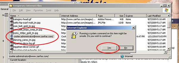 - Double-click the cookie. You will get a warning about an unsafe command; this is trivial and harmless. Click "Yes" to continue.